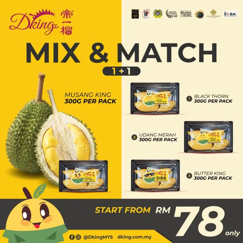 Fresh durian order cut off time at 1pm, delivery within 4pm to 8pm.